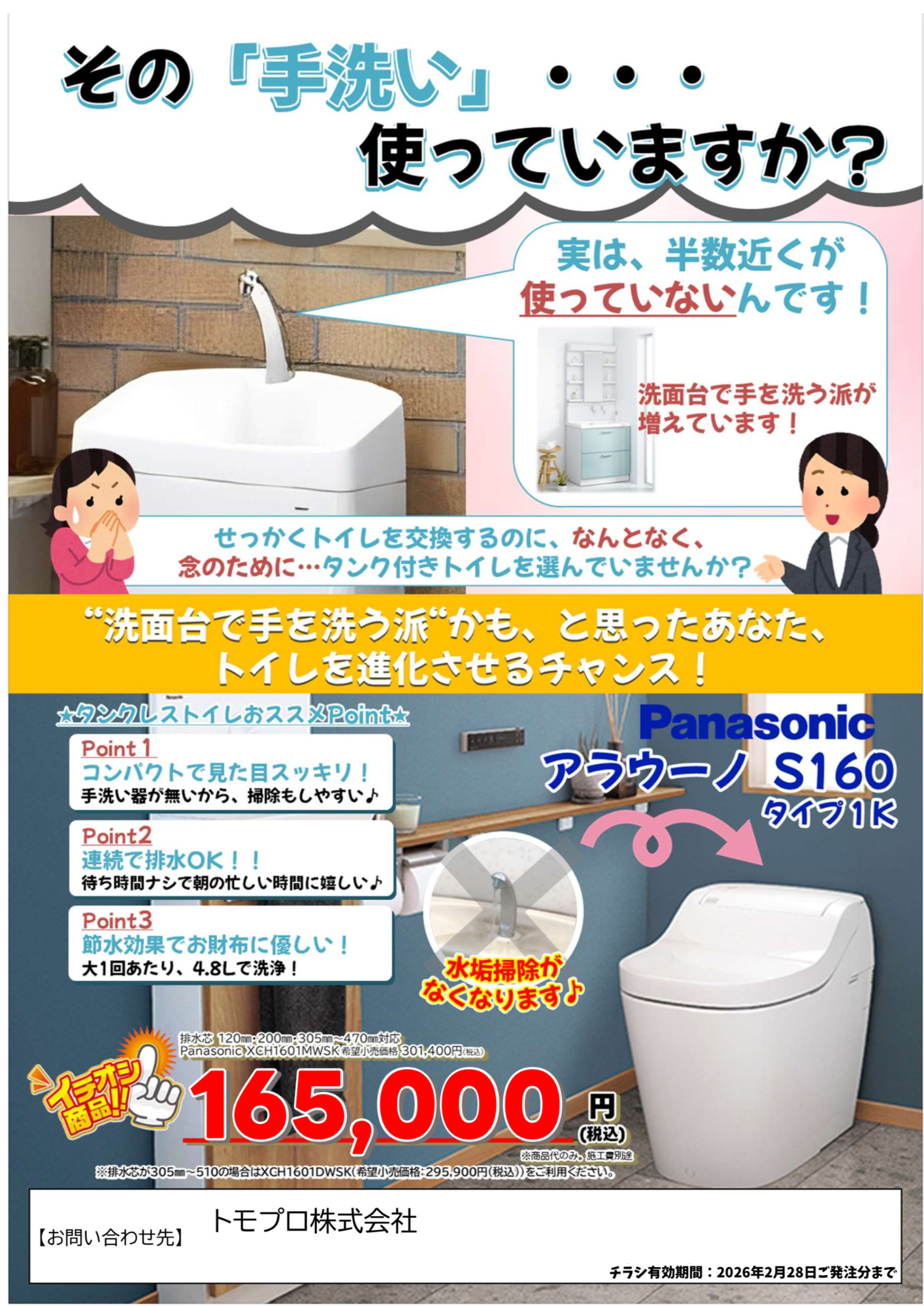 使用していなくても水アカは付いてしまう!だったら、手洗いのないトイレでスッキリ快適にしませんか?